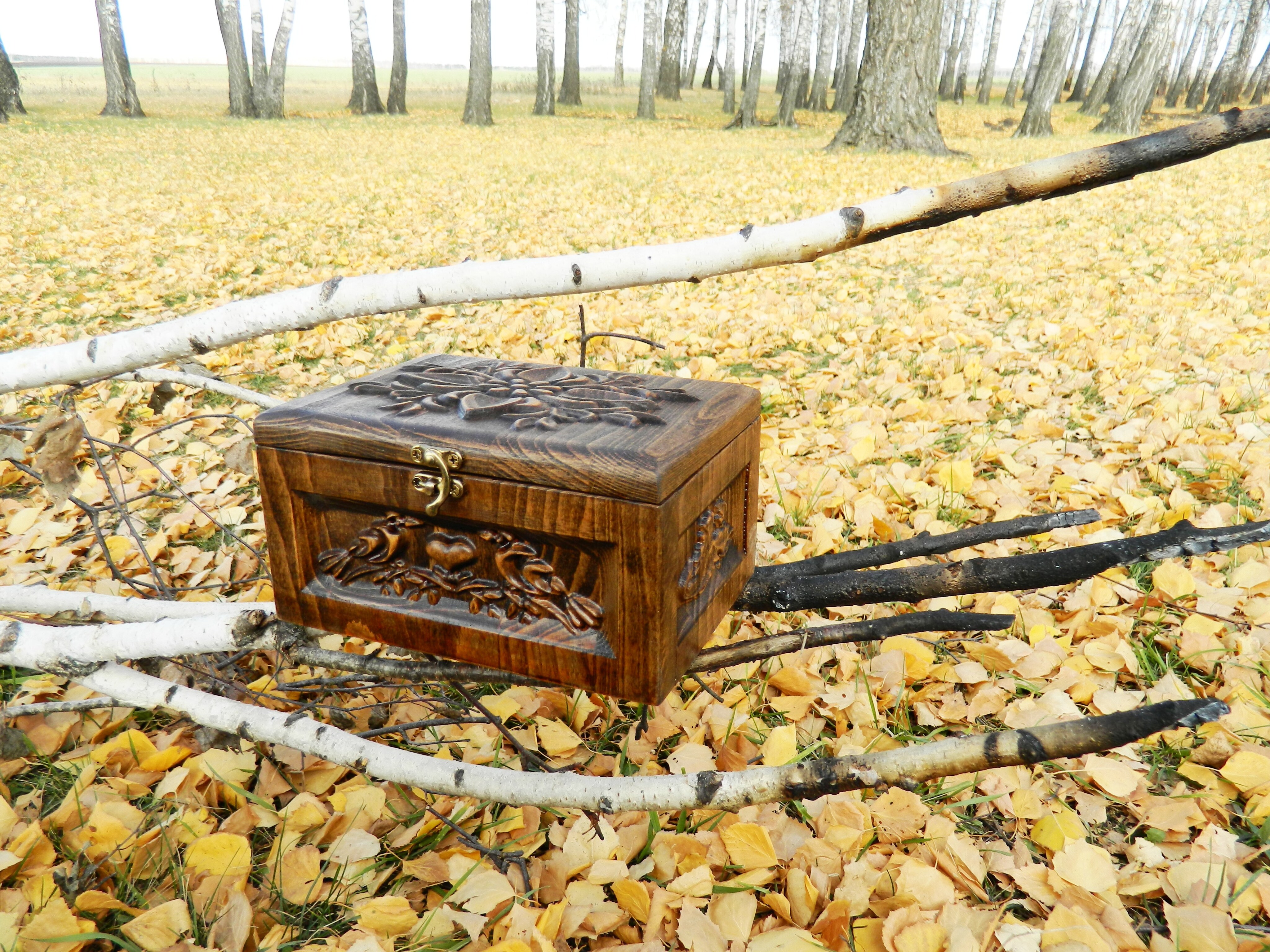 Шкатулка выполнена из дерева дуб.