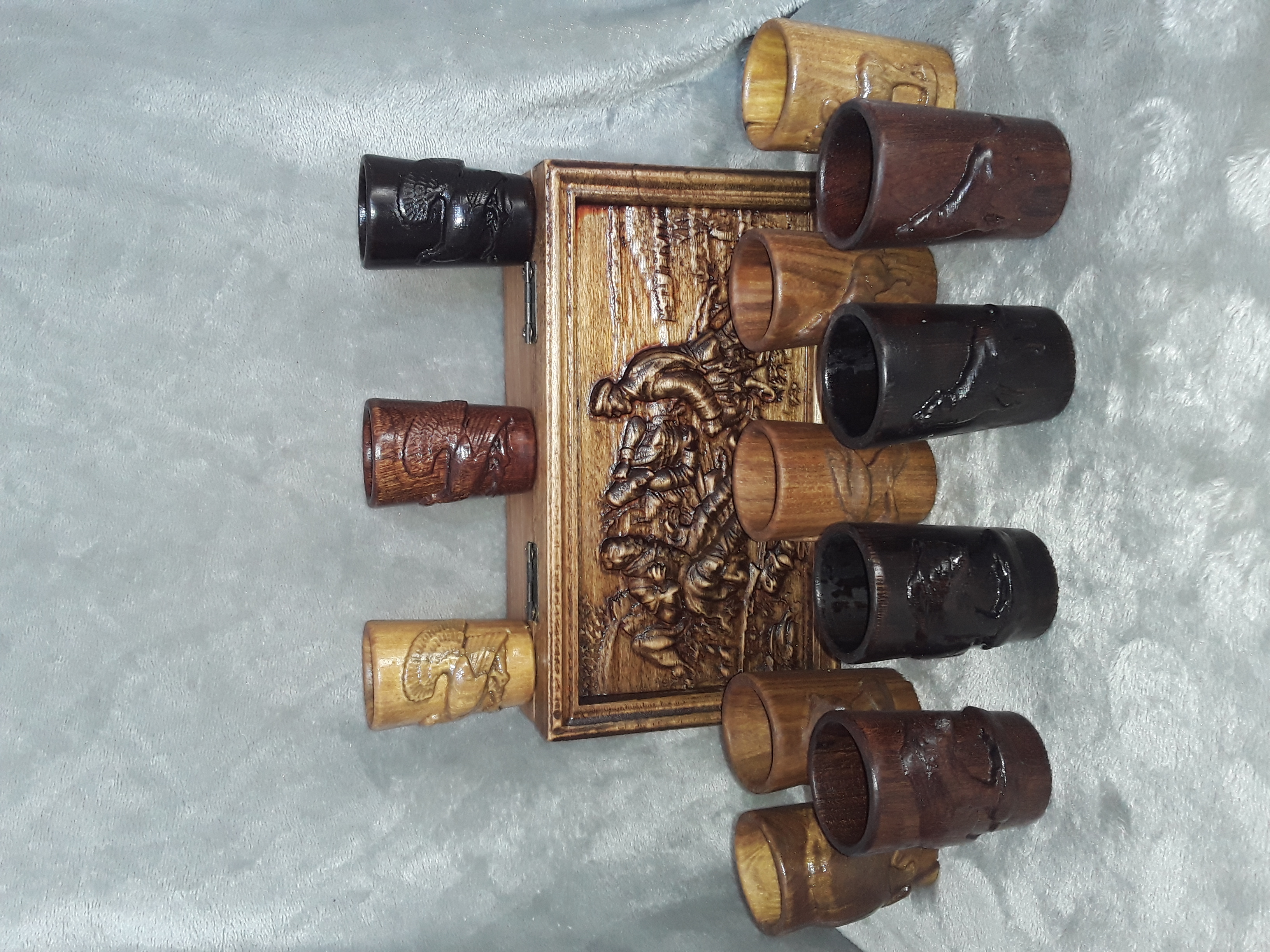 При заказе набор рюмок до 8 штук, все резные элементы будут разные.